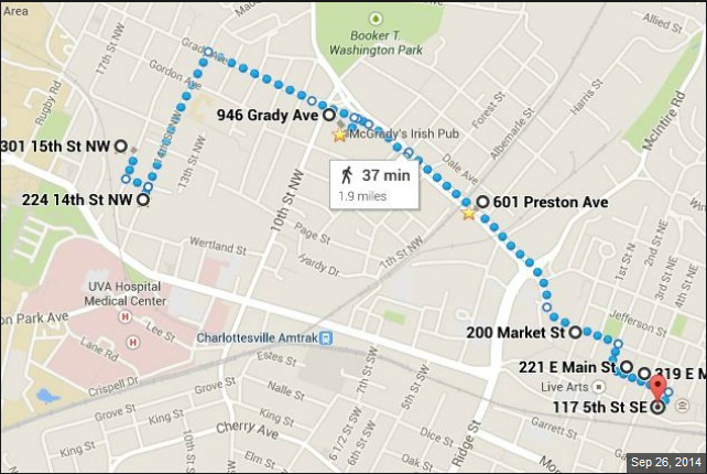 Below, Hannah generated points s0, s1, s2, … sn along the path C in Charlotesville